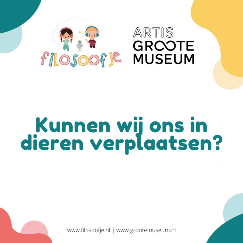 Na een rondgang door het ARTIS park én Groote Museum begint het Kleine Grote Vragenuur. Kinderen gaan met filosofe Maaike in gesprek over de vraag: Kunnen wij ons in dieren verplaatsen? En, kunnen wij ons in andere mensen verplaatsen? Hoe weten we nou écht zeker hoe een dier zich voelt? Leren we dieren beter kennen door films te kijken?